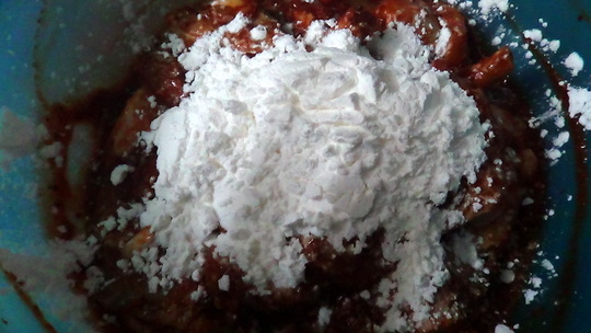 After marination add cornflour and all purpose flour/maida and mix altogether.
