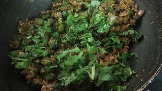 Turn off the flame.Add chopped coriander leaves to enhance the taste of the curry.