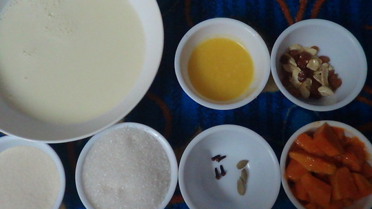 In the same kadai add 2 tsp of ghee, when it is hot add clove fry for a while add milk bring it to boil add sugar in it,when sugar dissolves in milk add roasted rava/semolina by stirring  in such a way to avoid forming lumps.