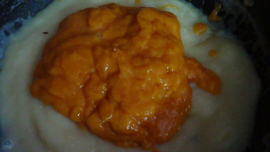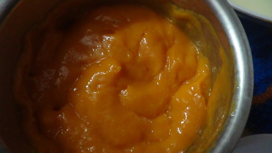 Blend mango pieces into a paste (without adding water) and keep ready.