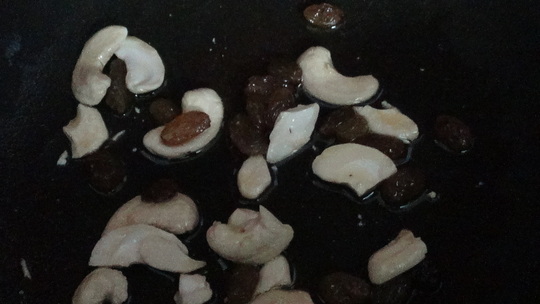 Heat a kadai by adding 2 tsp of ghee in it ,fry cashew and raisins to golden and set aside.