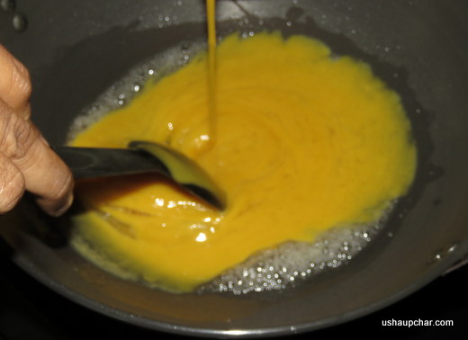 2. Heat a heavy bottomed pan, boil a cup of water in it for 5 min, remove it/ waste it to prevent/deodorize the cooking pan