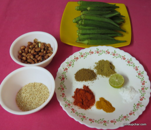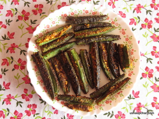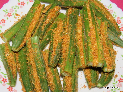 Lady’s finger/Okra/Bendekai (Kannada)/ Bhindi (Hindi) / Bendakaya (Telugu) is used extensively in Indian cooking. Stuffed lady’s finger is a tasty side dish to enjoy with rice/roti’s, an easy to make recipe, Roasted peanuts, sesame and other spices in stuffed inside ladys’s finger and shallow fried, the preparation of this dish varies from region to region .. this is typical north Karnataka recipe, just try and enjoy as a side dish for rice or roti’s.