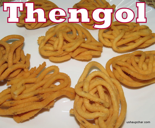 Thengol is a crispy crunchy,snacky, snack. Very easy to prepare recipe in a short time, a scrumptious snack prepared with rice flour, urad dal flour, which makes a crispy and tasty snack, one of a common snack prepared  for festivals like – Krishna Janmastami, Ganesha chathurti, Diwali and other occasions. A perfect snack to store for a long time, to munch as a tea time snack.