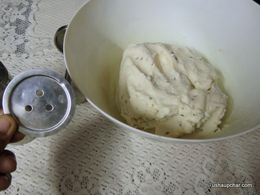 to prepre the dough – Mix urad dal flour, rice flour properly with butter for 6 to 7 min (until it coats evenly), then add hing jeera salt, mix once again properly, then add water to knead.