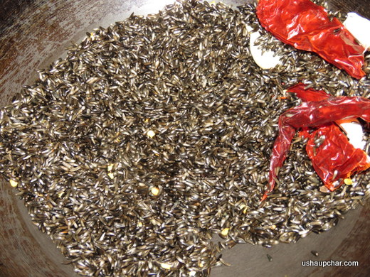 Heat a pan, when it is hot add niger seeds in it, fry it in a medium flame until it starts it splutter,