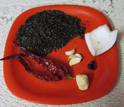 Uchellu chutney is a traditional combination for Ragi rotti/Ragi dosa. An easy to make chutney with simple ingredients. Niger seeds is similar to black cumin seeds but are soft and slippery, similar to sesame with unique taste, a protein rich seeds, It is an essential ingredient in most curries like Yengai– Masala stuffed in Egg plant/Brinjal, traditional curries like Kappavare saaru